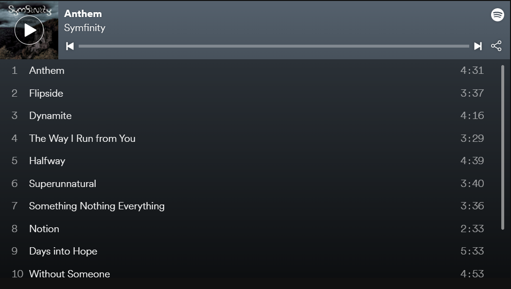 Symfinity just released their new album, Anthem, in March 2020 – which showcases their new, heavier sound. Previous releases include their recently released singles, Flipside, Dynamite, Halfway, and Everything I Know Explodes – along with earlier, more rock ballad-styled albums Apocrypha and Intangible Dreams."